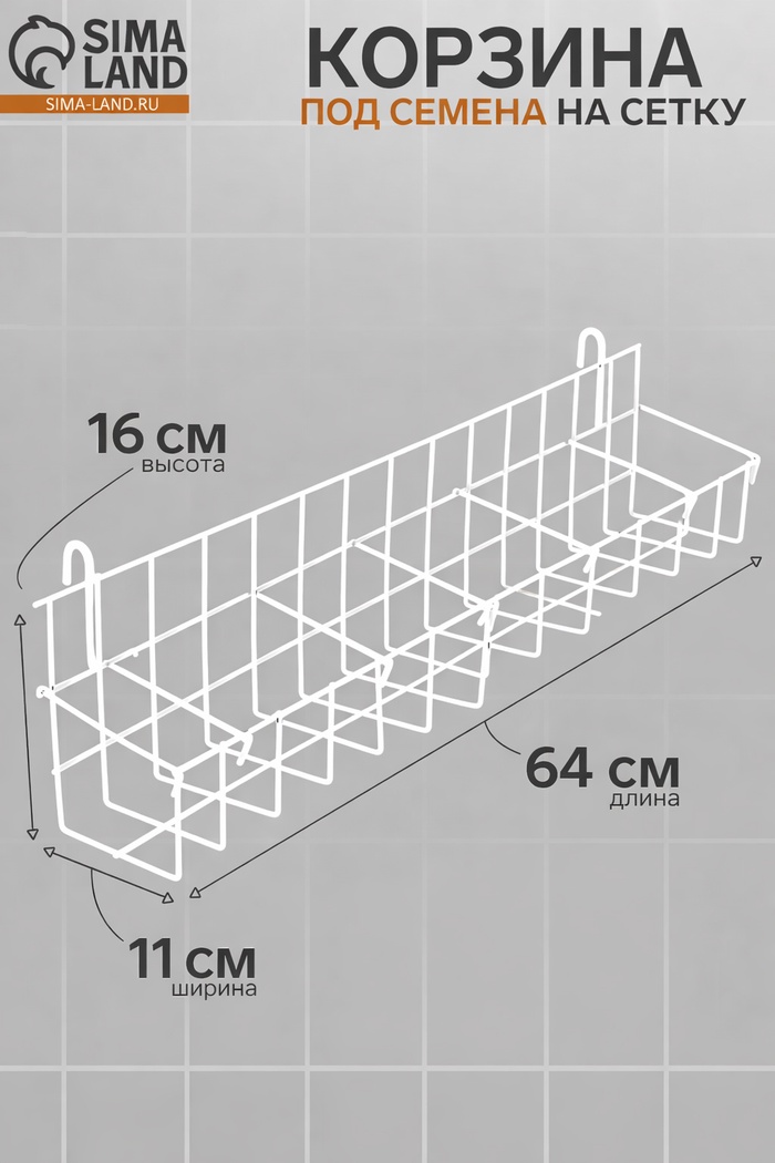 Корзина под семена на сетку, 64×11×16 см, белая